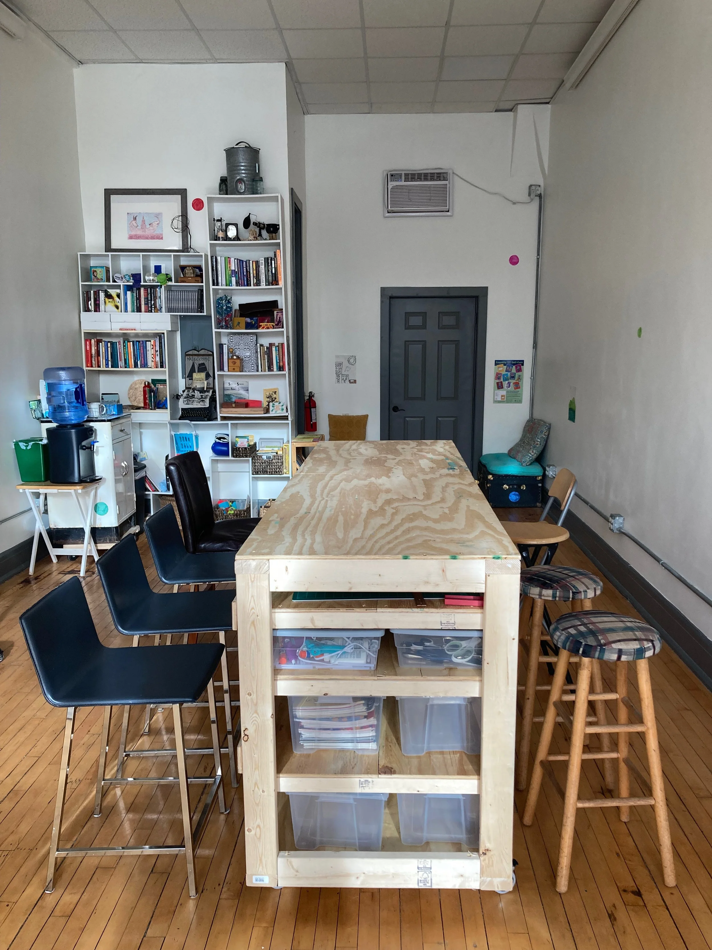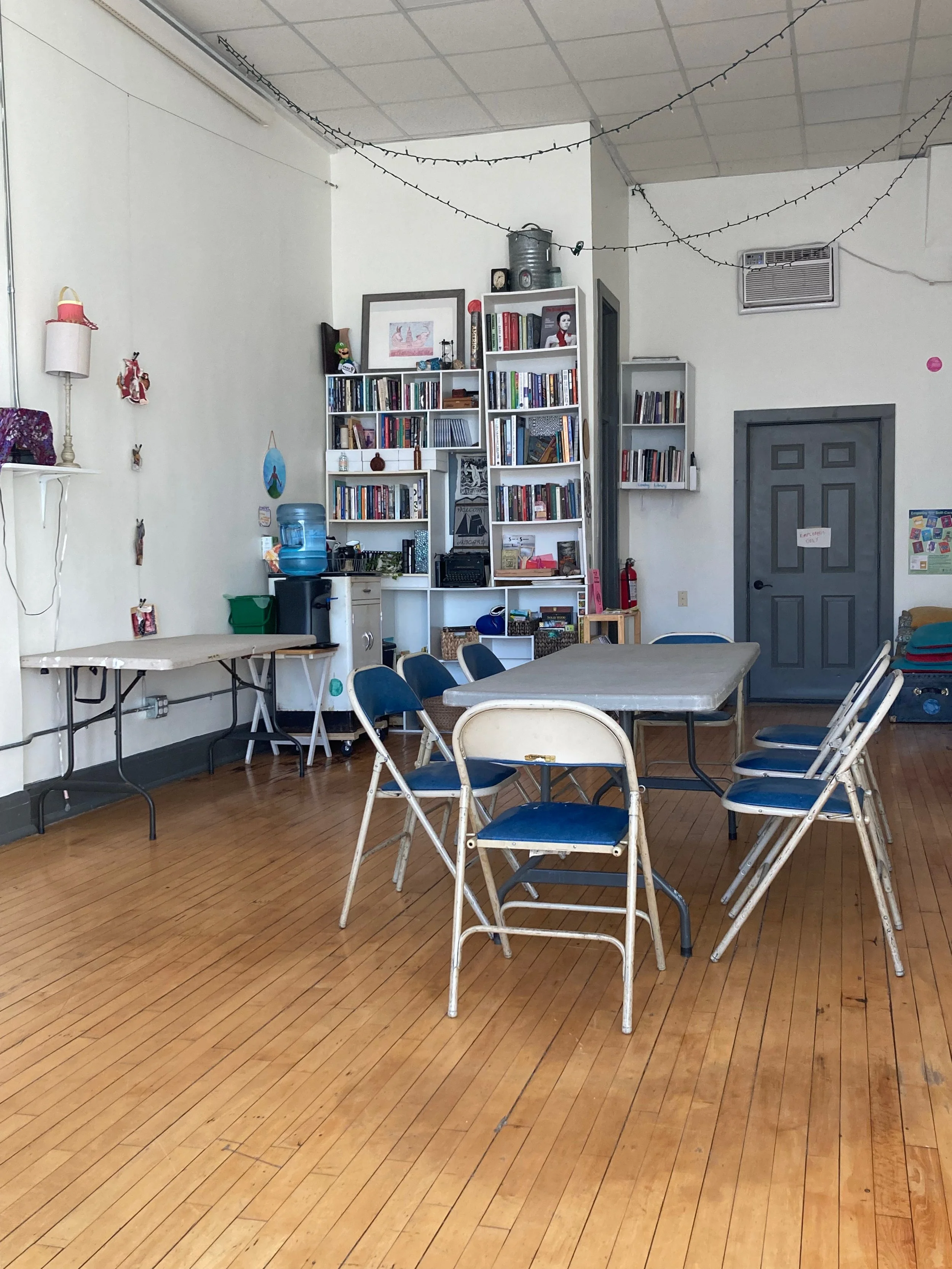 Hold your meeting, class, private session, or community event at Waterstop! Rates range from $0 (with work trade) to $40/hr. Inquire at waterstopspace@gmail.com.